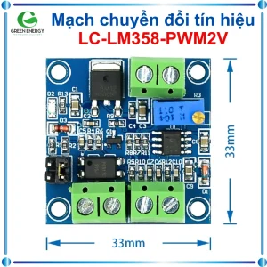 Mạch chuyển đổi tín hiệu PWM to Analog Converter (LC-LM358-PWM2V) được sử dụng để chuyển đổi tín hiệu độ rộng xong (duty) PWM 0~100% sang tín hiệu điện áp Analog 0 ~10VDC, thường được sử dụng để chuyển tín hiệu từ PLC hoặc một số mạch điều khiển trong công nghiệp