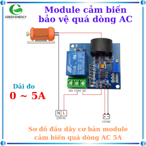 - Module cảm biến quá dòng AC 5A được sử dụng để ngắt những thiết bị AC khi dòng tiêu thụ của thiết bị đột ngột tăng cao hơn dòng cài đặt. Dòng điện có thể điều chỉnh từ 0 ~ 5A.